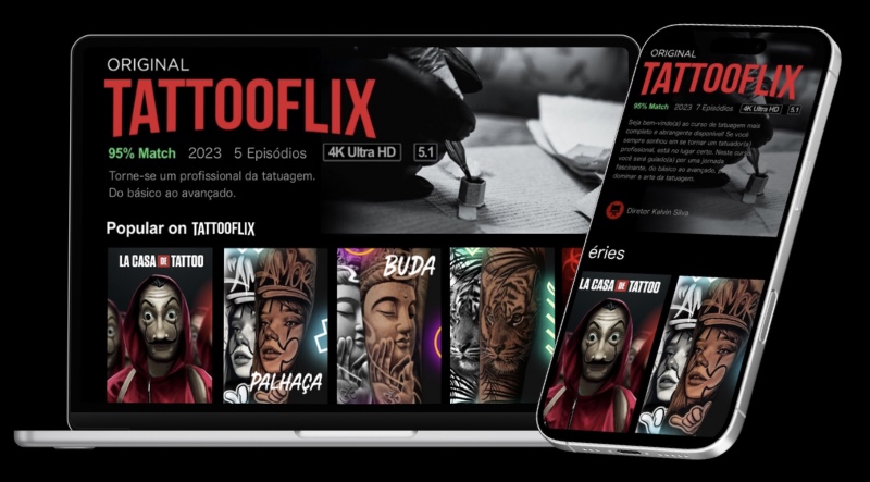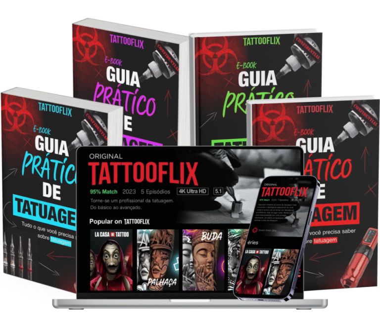 O TattooFlix é o curso em vídeo narrado mais completo do mercado, feito para iniciantes e também para quem já tatua e quer se profissionalizar.